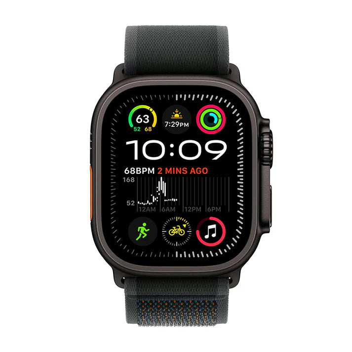 The Apple Watch Ultra 2 is the pinnacle of rugged capability, engineered for endurance athletes, outdoor adventurers, and anyone needing the most durable and feature-rich smartwatch available. Housed in a lightweight 49mm Black Titanium case, this model features the powerful S9 SiP for unprecedented speed, dual-frequency GPS for precise tracking, and an advanced Always-On Retina display reaching 3000 nits of brightness. With built-in cellular connectivity and the custom Action button, the Ultra 2 is ready for extreme environments and everyday demands, complete with the comfortable and secure Trail Loop band.
